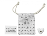 W zestawie znajduje się bawełniany woreczek o wymiarach 8 x 6 cm oraz karteczka z inspirującym napisem, co dodaje całości osobistego charakteru.