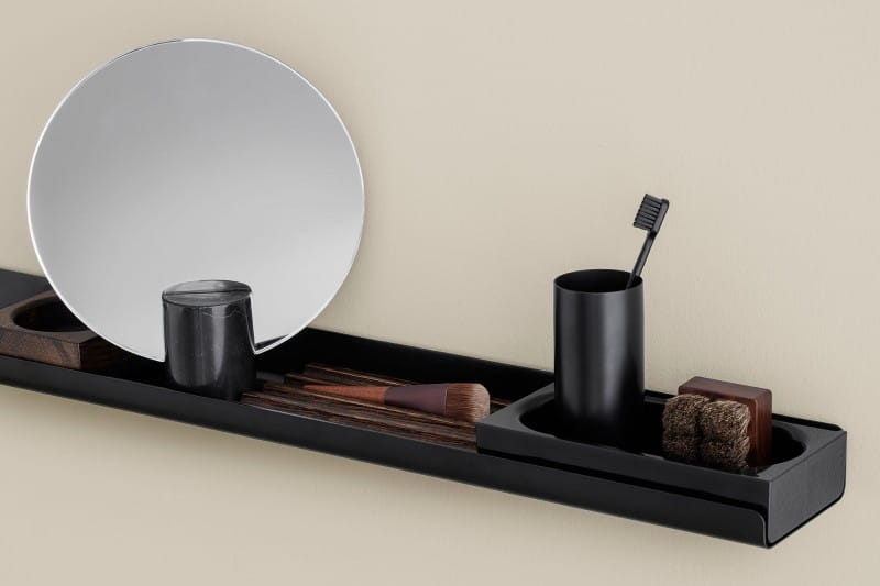 Kubek łazienkowy wykonany ze stali i pokryty warstwą tytanu zapewniającą wyjątkową odporność na zarysowania i korozje.