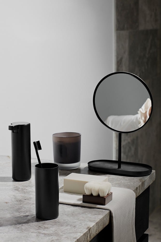 Lusterko z podstawką, powiększające(5x). Regulowana forma pozwala dostosować kąt nachylenia do własnych potrzeb. Wykonanie ze stali pokrytej warstwą tytanu zapewniającą wyjątkową odporność na zarysowania i korozje.