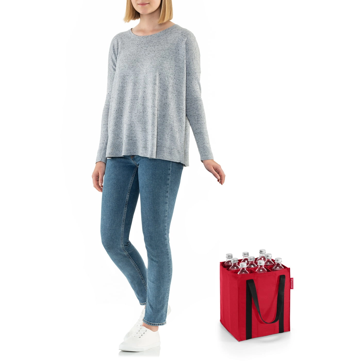 Torba na butelki o pojemności 0,75 l, 9 przegródek, w których szklane butelki nie hałasują ani nie potłuką się. Komfort noszenia dzięki silnym uchwytom łączonym za pomocą rzepy. Wymiary torby dostosowane do typowego kosza rowerowego, wyprodukowano z mocnej tkaniny poliestrowej.