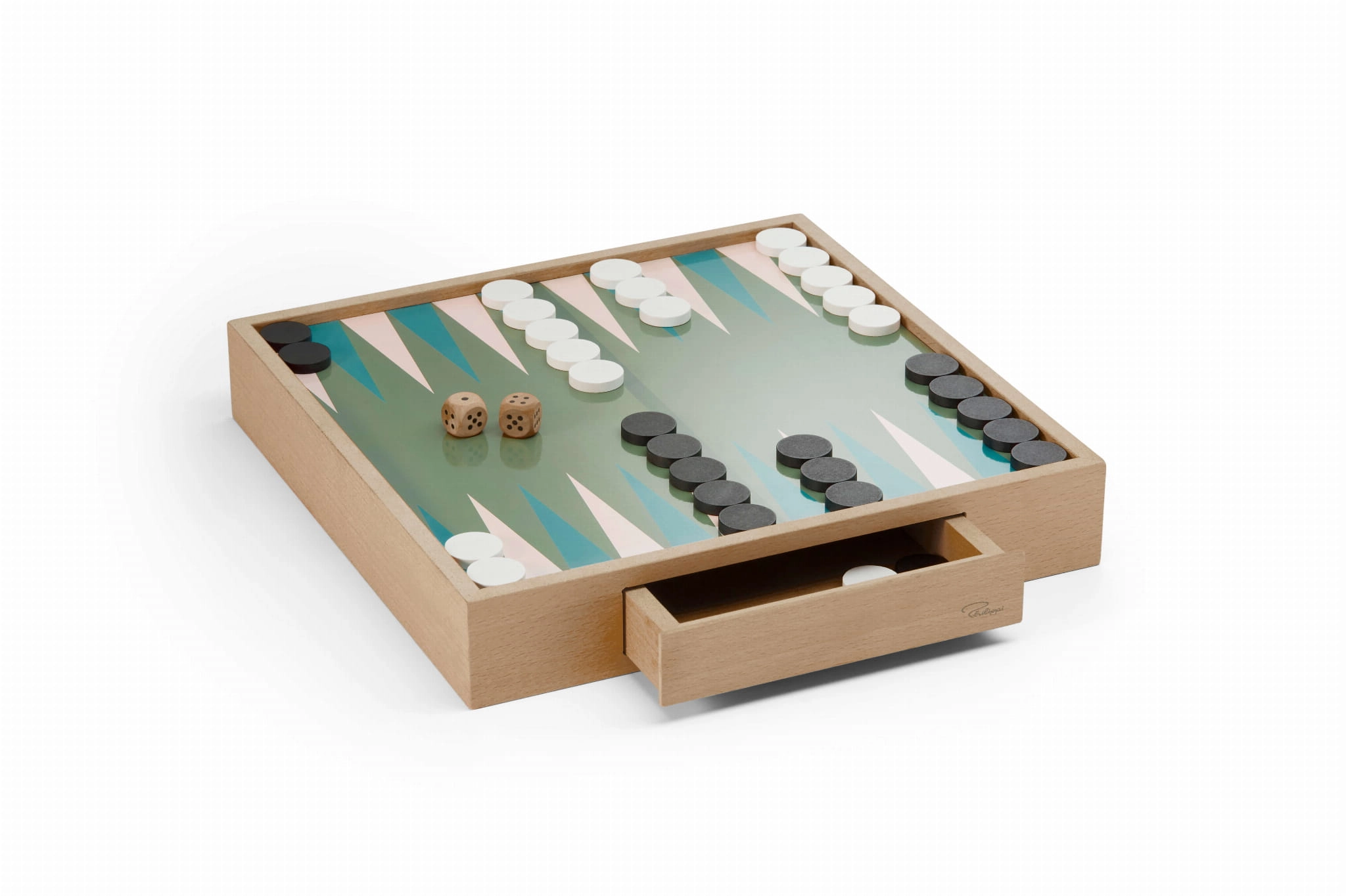 Wyobraź sobie, jak podczas leniwego popołudnia przy stole w ogrodzie najpierw zasiadasz do pasjonującej partii backgammonu, a po chwili, w błyskawicznym ruchu, obracasz pudełko i zanurzasz się w strategiczną zabawę w kółko-krzyżyk. GIOVANNI nie tylko oferuje wyjątkową zabawę, ale również sprawia, że każda chwila jest pełna emocji i radości. Kiedy podróżujesz, odpoczywasz w parku czy spędzasz czas na plaży, GIOVANNI zapewnia, że wszystkie elementy są zawsze na miejscu dzięki praktycznym szufladom na elementy gry, umieszczonym naprzeciwko siebie. Każdy ruch i każda rozgrywka są łatwe do zorganizowania, a całość pozostaje w idealnym porządku.
